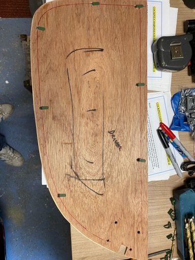 Near the end of the build you are required to create door cards from 3mm ply with clips to clip them onto the doors once covered etc. Here are some pics of that process.