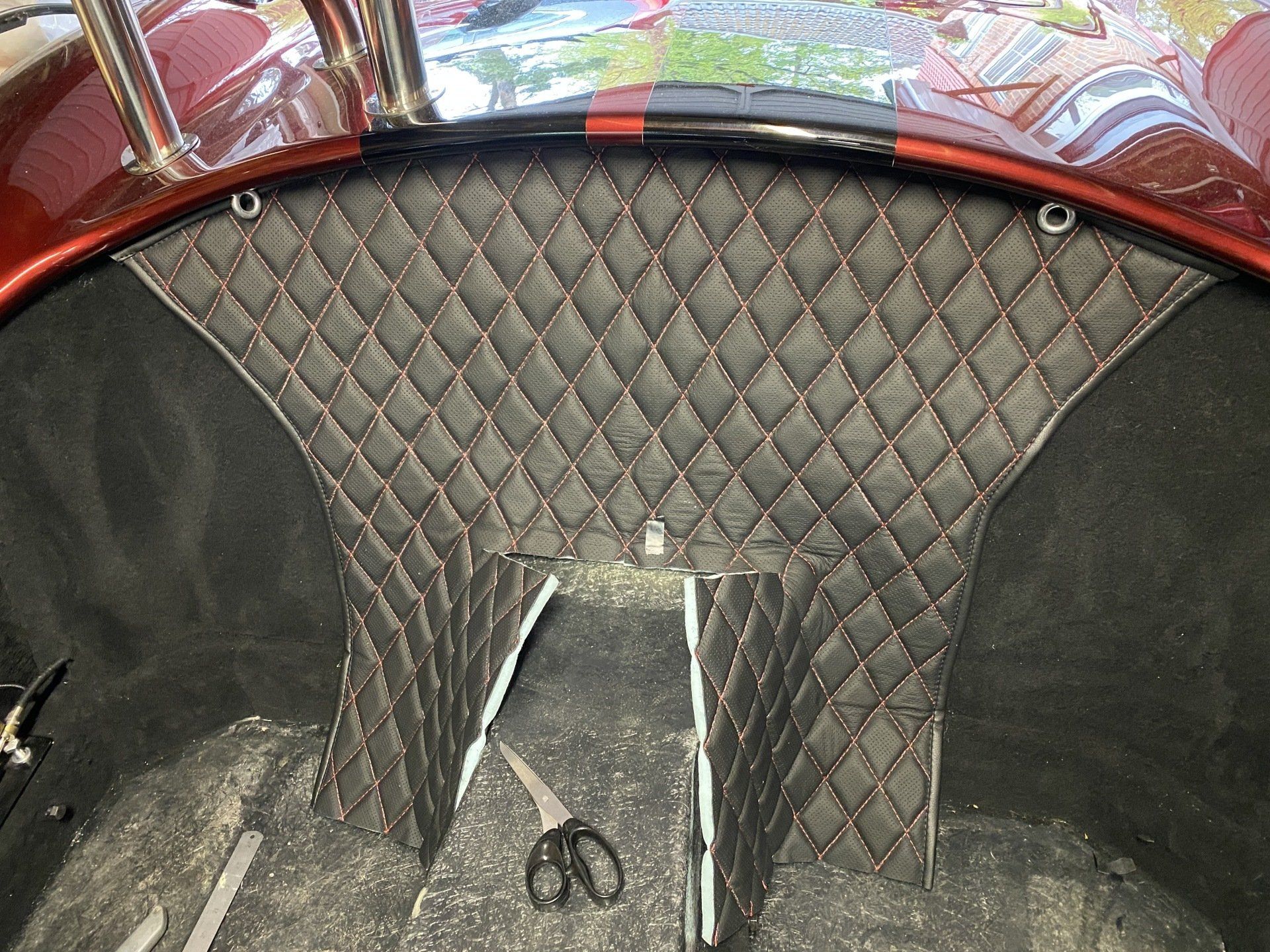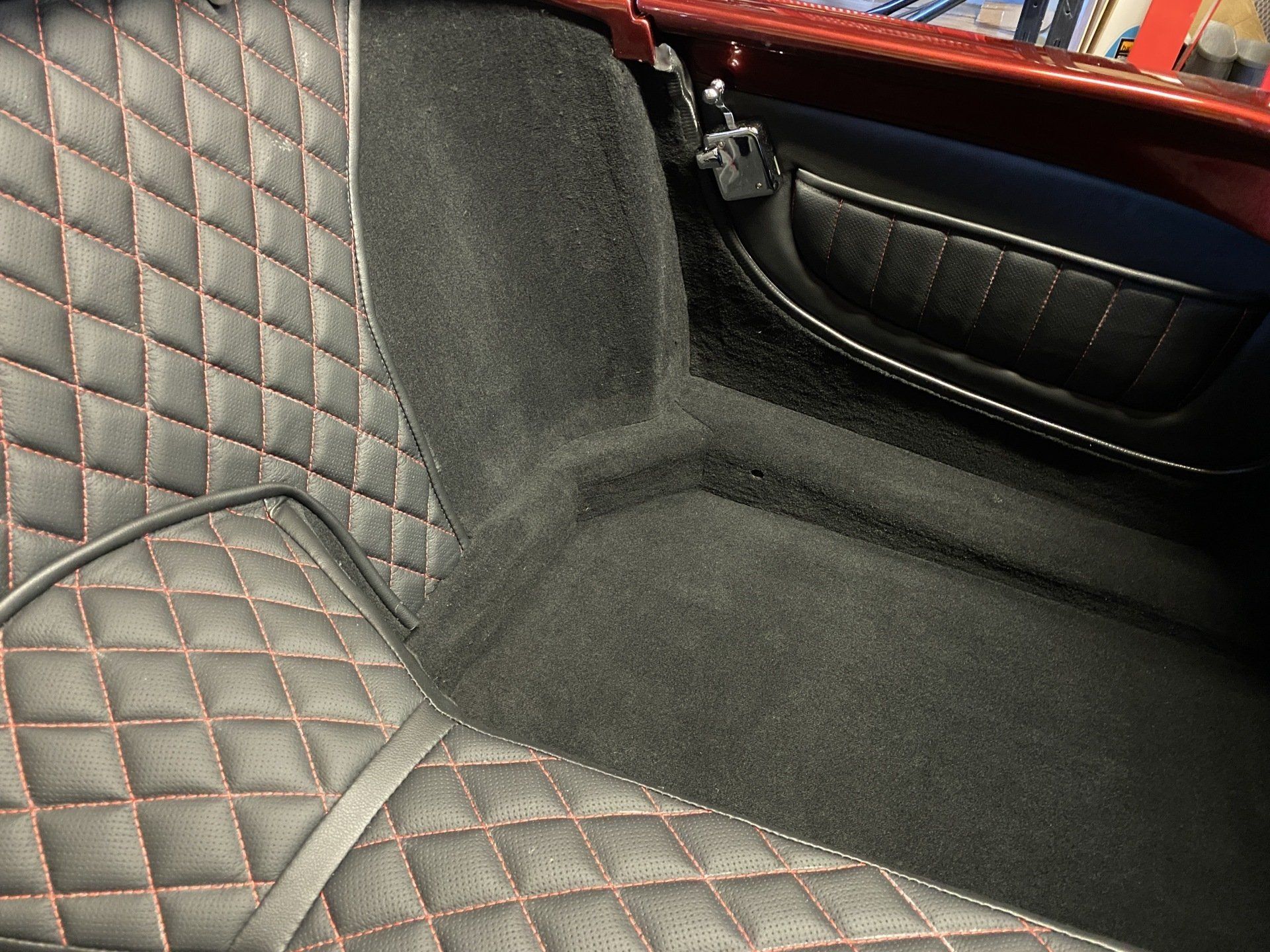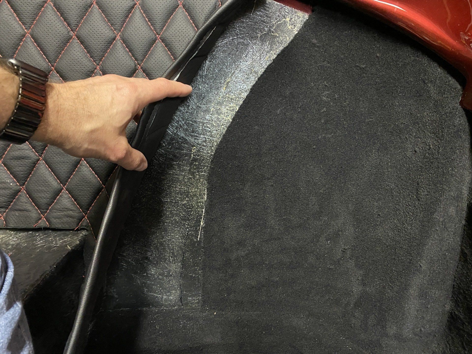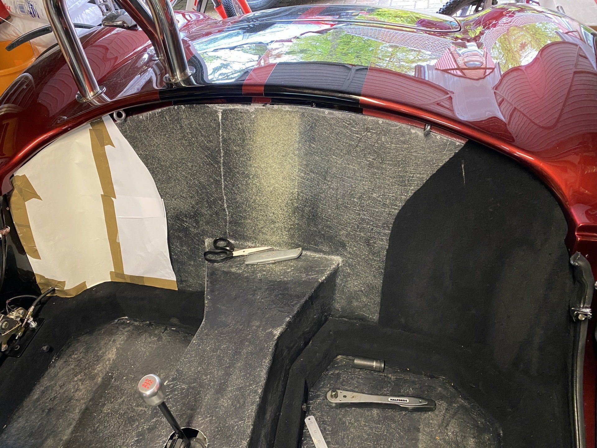 Now you can start trimming around the tunnel and the sides. The side piping overlaps the carpet by 5mm or so.