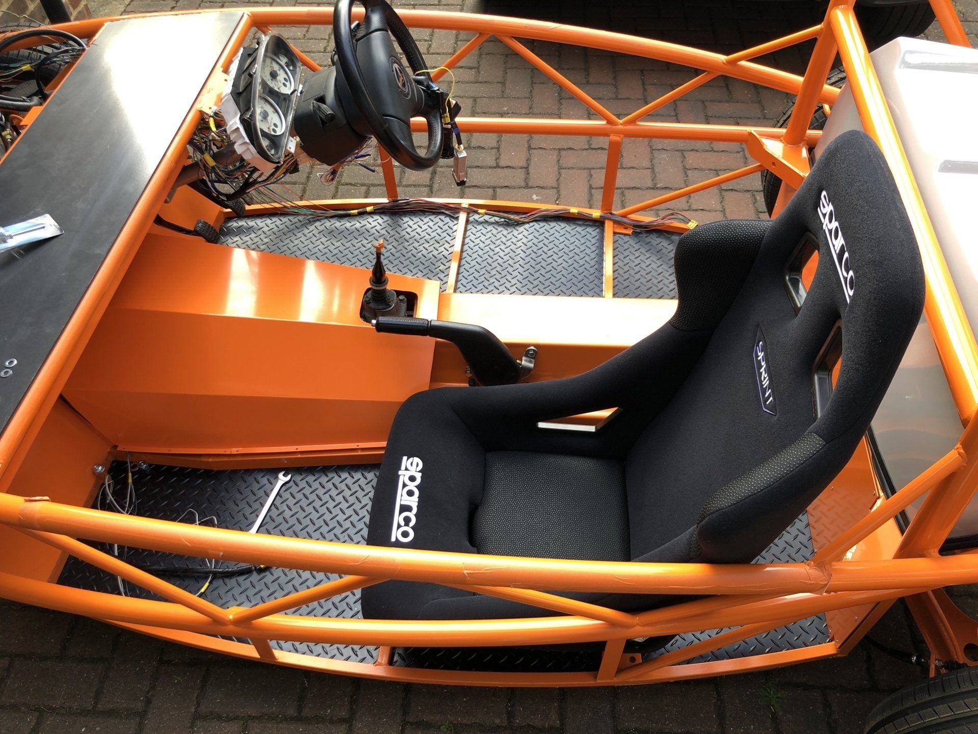 Seats on top of runners which in turn are on top of thick metal bar from B&Q, fixed straight through frame with large washers on underside and thread lock nuts with at least one turn of thread showing for IVA.