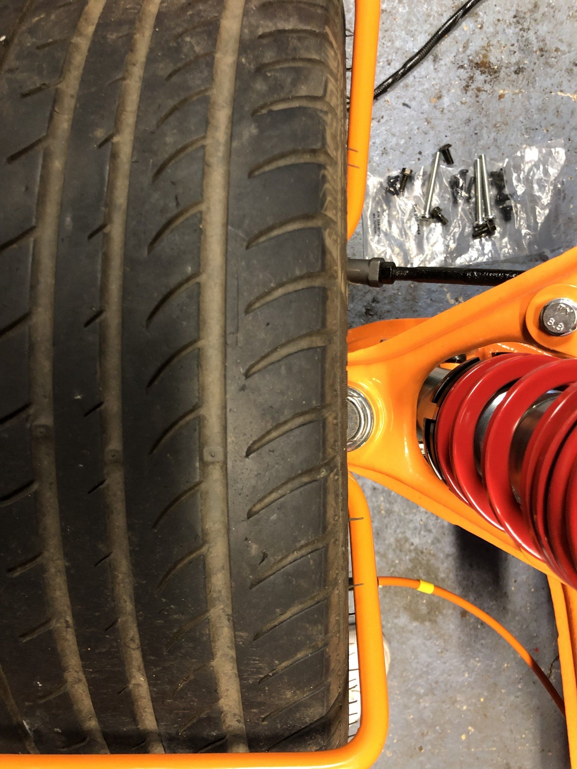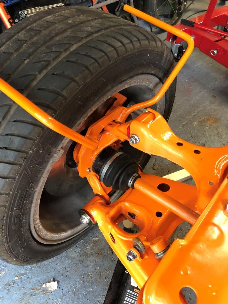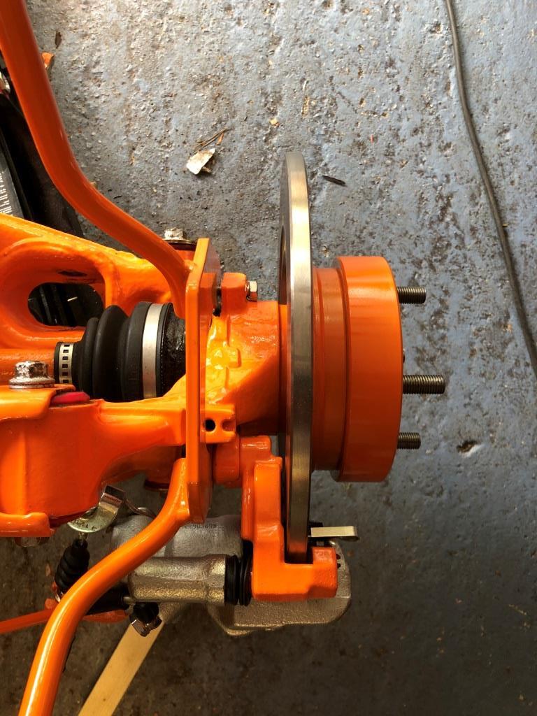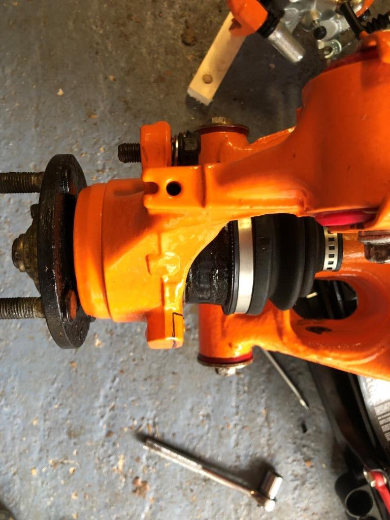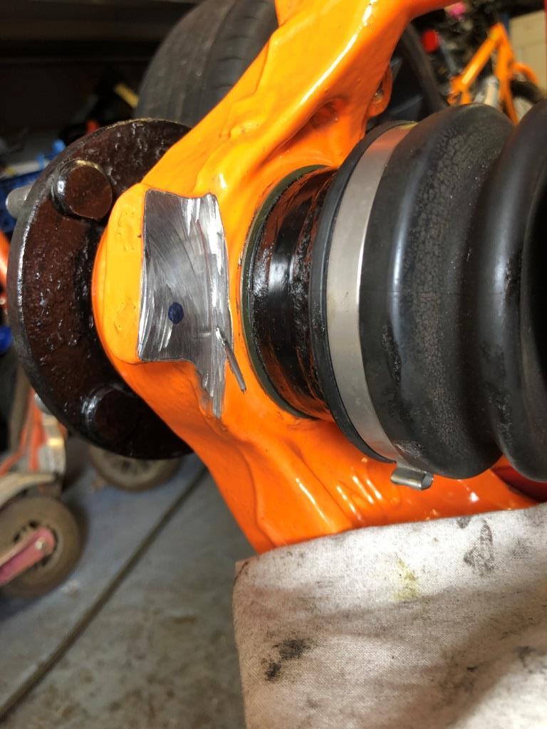 First one of the dust guard holes needed rethreading to next size up. Then i found the top of front wishbone rubbed, so i simply inserted a small washer in top fixing hole which angled the stay away.