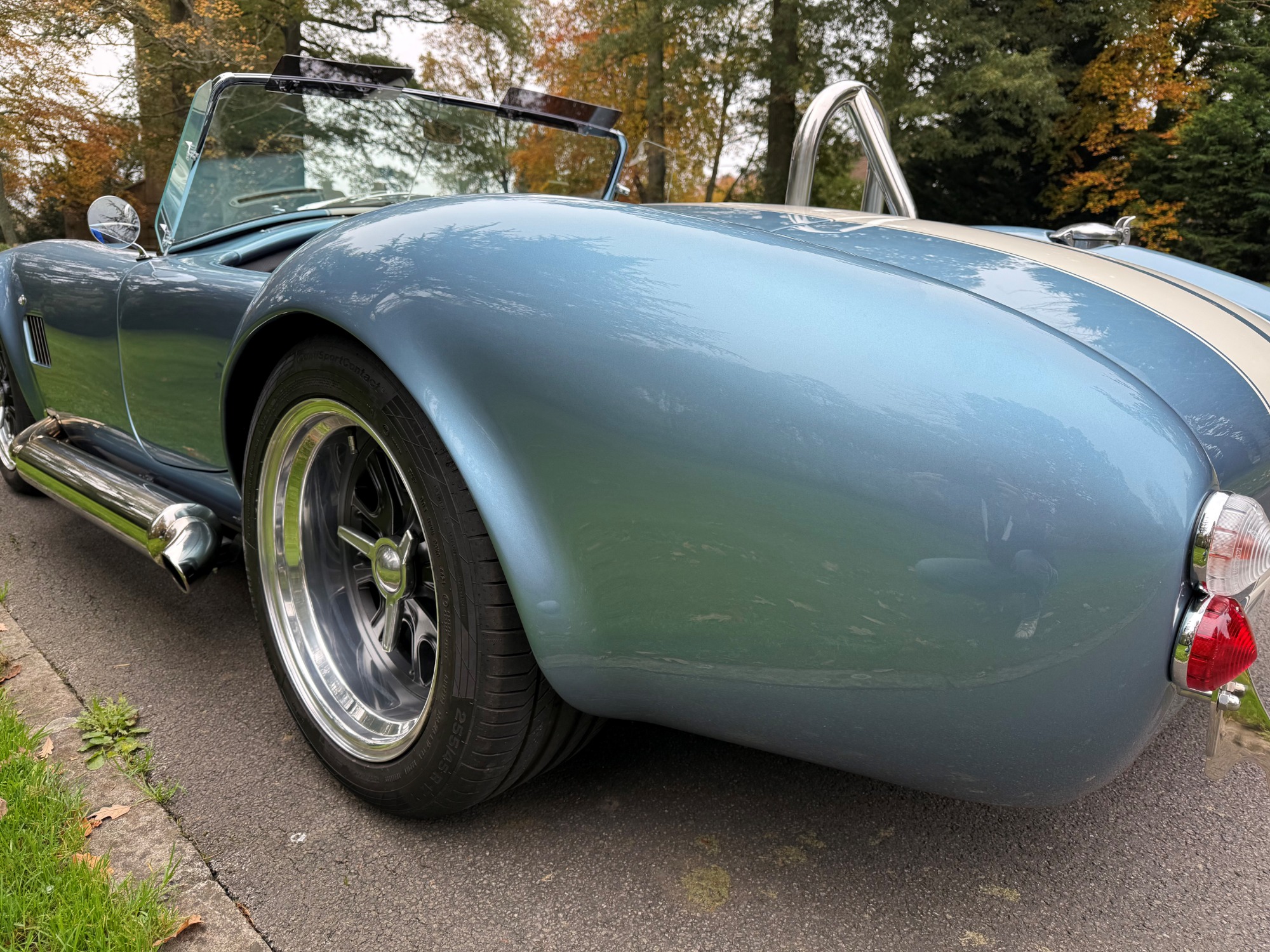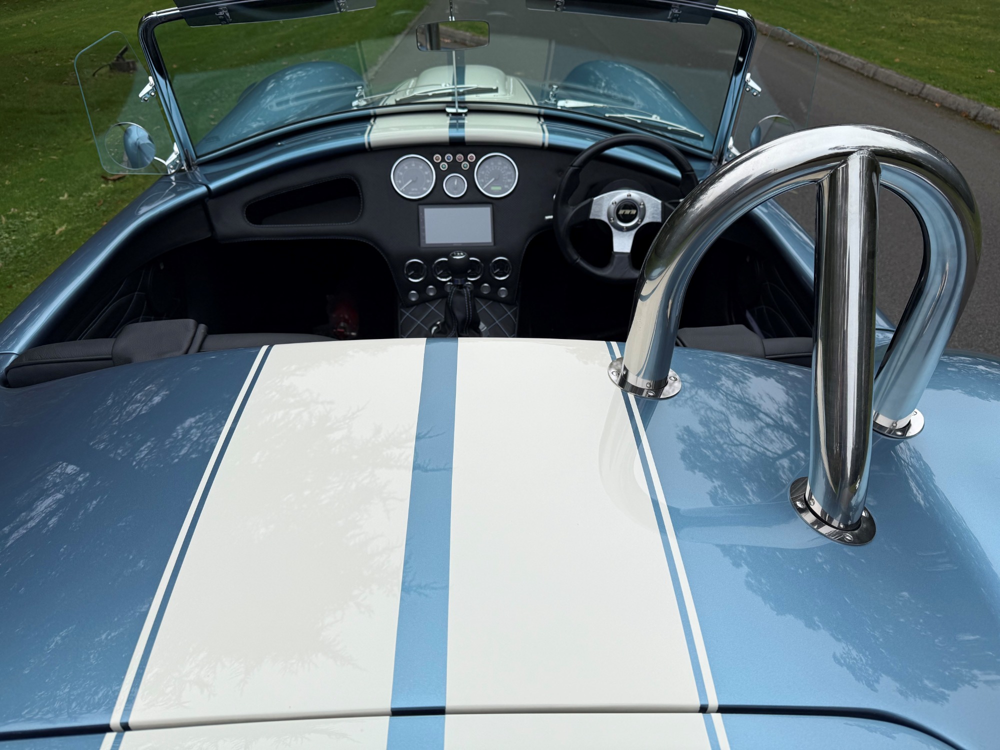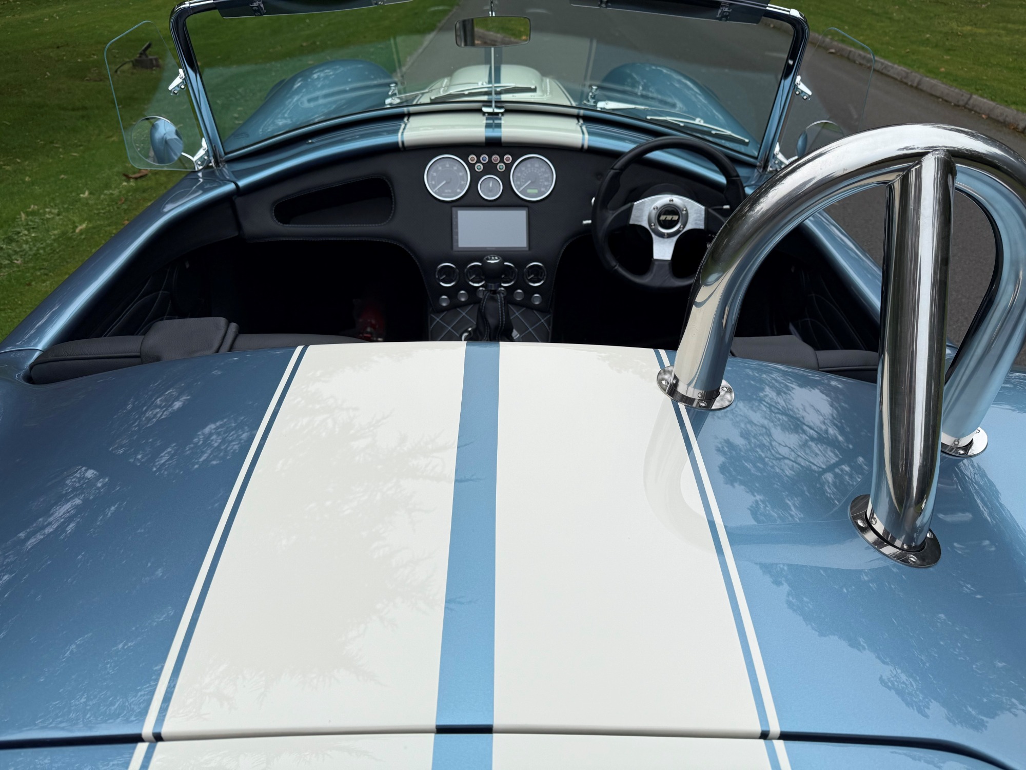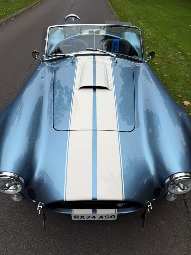 This Cobra build is in a classic viking blue with Wimbledon white stripes.