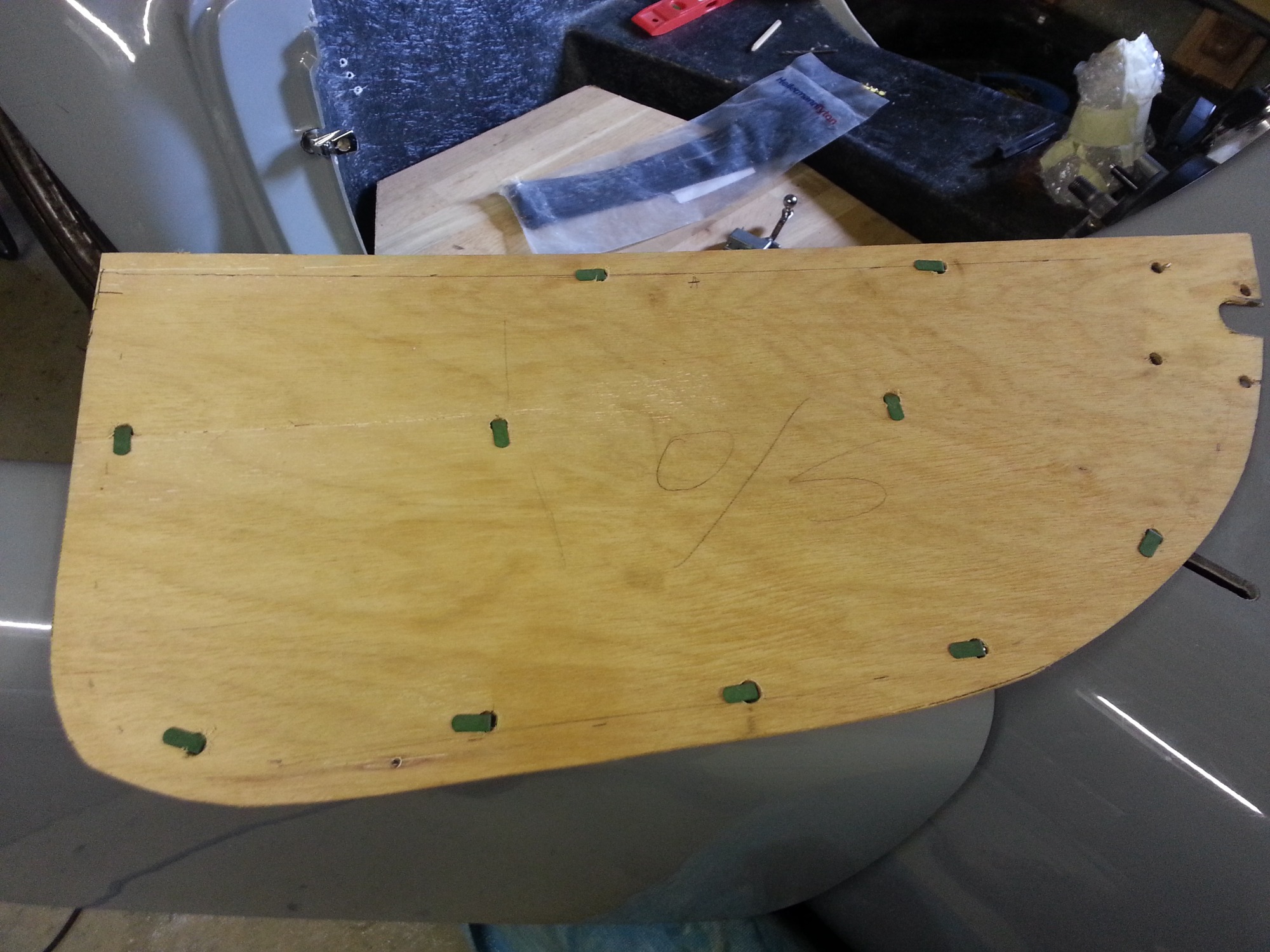 Near the end of the build you are required to create door cards from 3mm ply with clips to clip them onto the doors once covered etc. Here are some pics of that process.