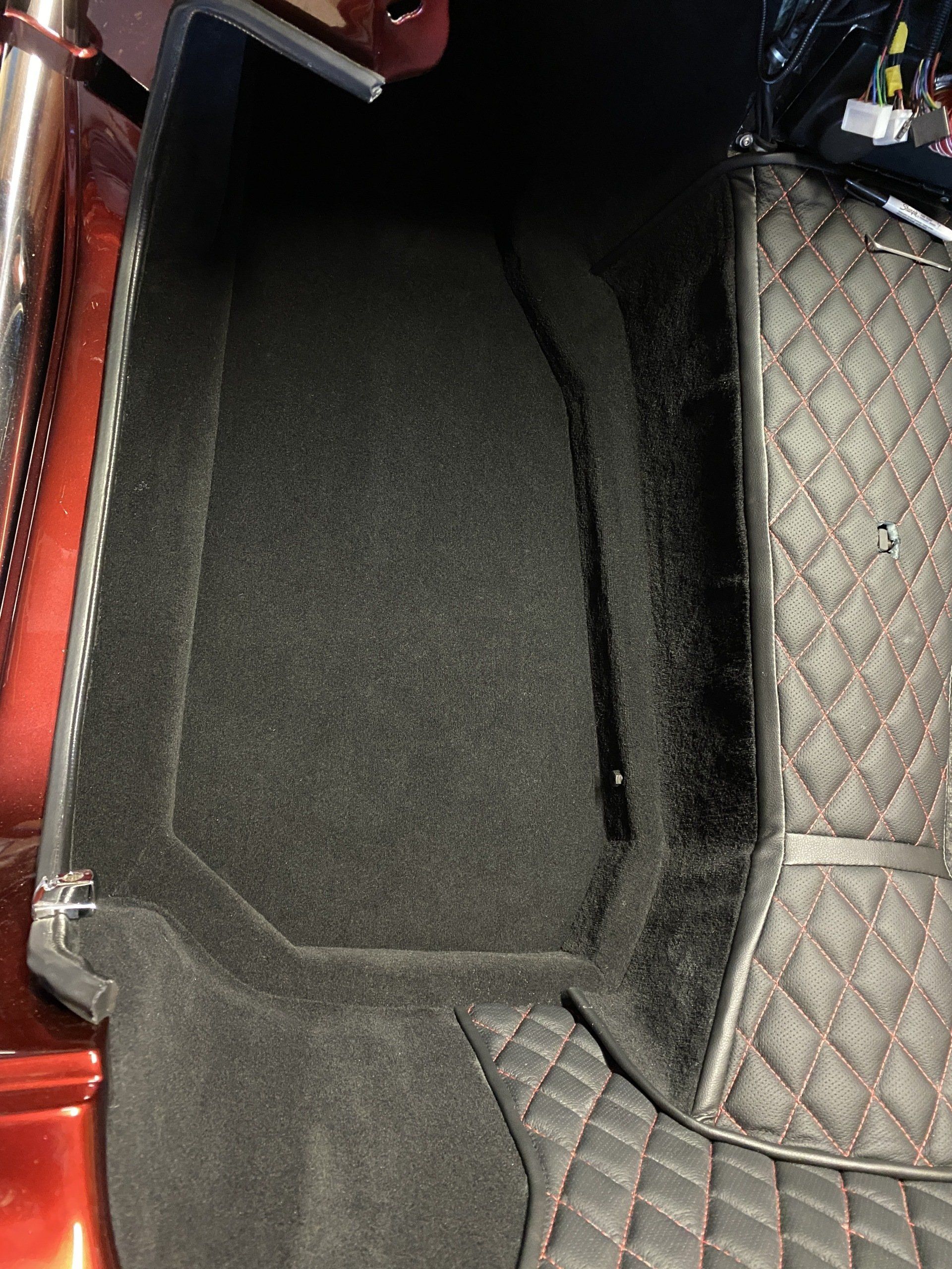 Now you can start trimming around the tunnel and the sides. The side piping overlaps the carpet by 5mm or so.