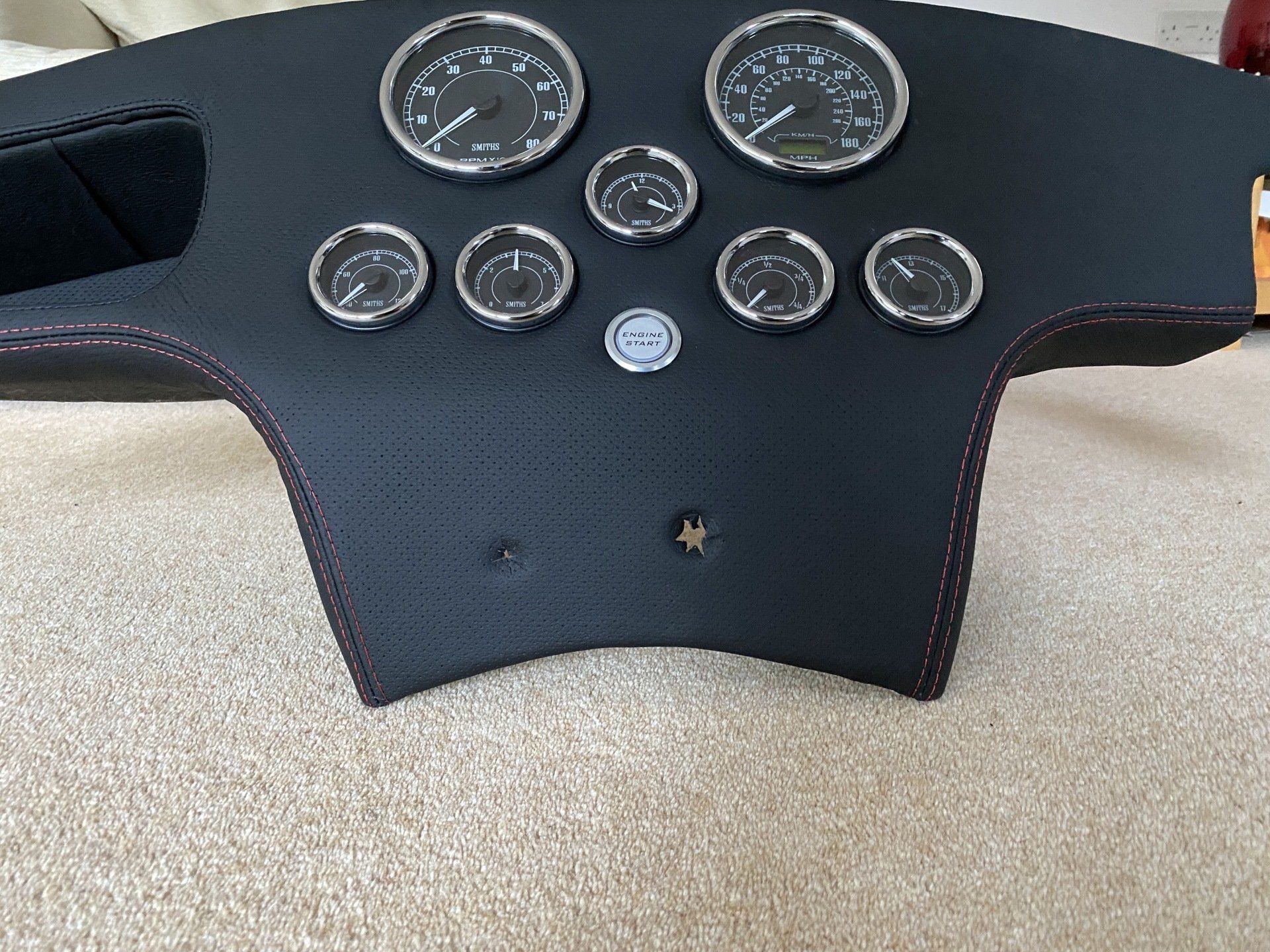 The dash should also just fit straight in. Hopefully you made the dash the correct size before leather trimming. Remembering to take into account the thickness of padded leather etc at the bottom of the dash against the tunnel and of course to fit your dials.