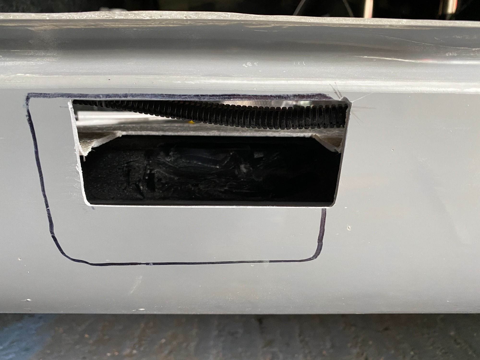 Not sure if I should make holes bigger and line with rubber trim, or just tidy up with P38 and paint.